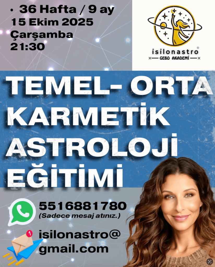 ➡️Eğitim, astroloji temel bilgilerinden başlayarak, karma ve reenkarnasyon,mitoloji kavramlarının, astrolojik haritalarda anlamlandırılmasını hedeflemektedir.